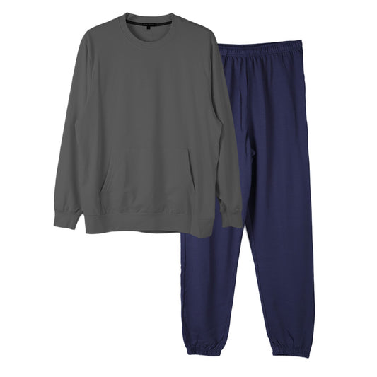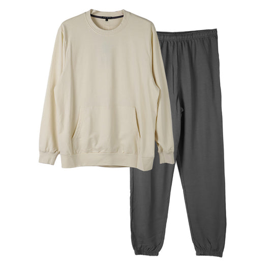 ルームウェア メンズ 綿100% パジャマ 長袖 上下セット 丸首 クルーネック 部屋着 M L LL 男性 紳士 無地 セットアップ シンプル リラックスウェア スウェット 長ズボン コットン マフポケット 裾しぼり ウエストひも ポケット付き 父の日 プレゼント ギフト