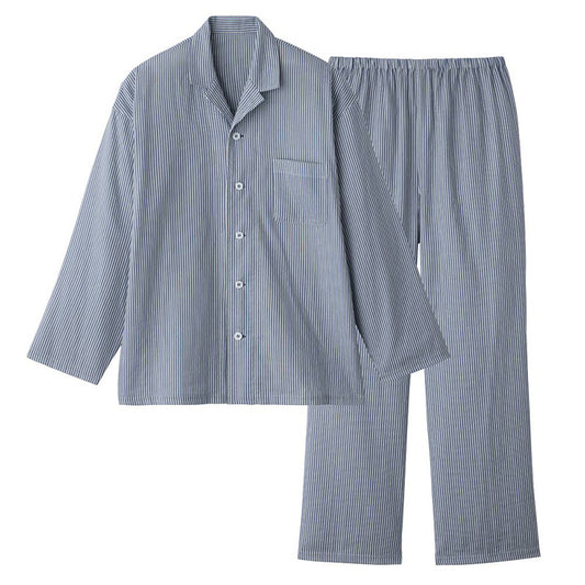 パジャマ メンズ ガーゼ 綿100 春夏 夏用 シンプル 涼しい 長袖 紳士 前開き 部屋着 M L 長ズボン 男性 薄い 綿 寝巻 ルームウェア プレゼント