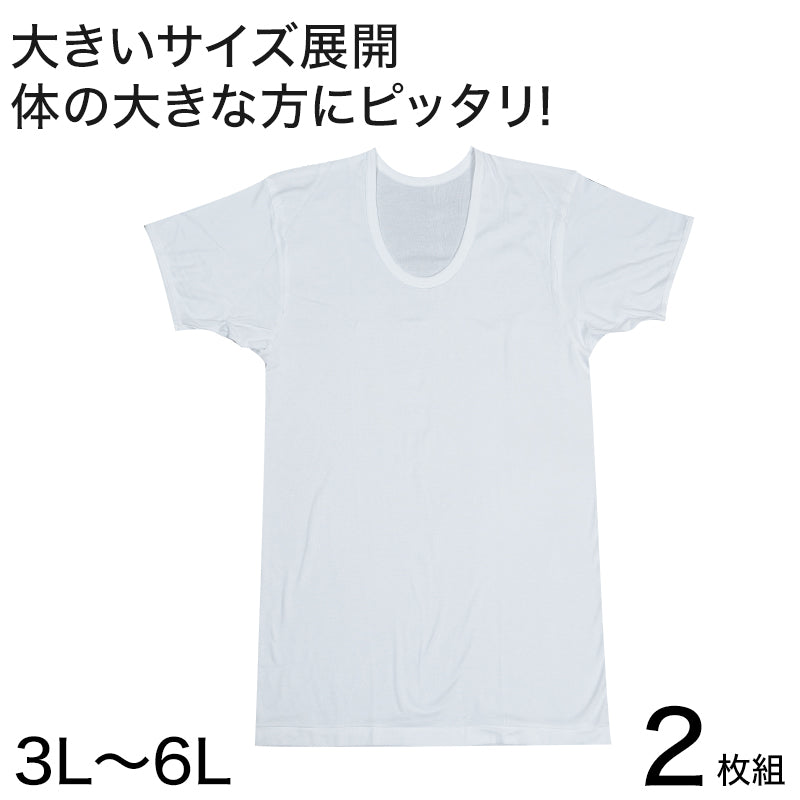 メンズ 半袖 tシャツ 大きいサイズ 綿100% Uネック 2枚組 3L~6L (下着 Tシャツ シャツ 男性 U首 白 無地 肌着 インナー インナーウェア 3l 4l 5l 6l)
