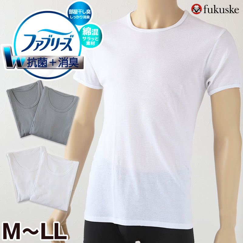 メンズ インナー 半袖 ファブリーズ シャツ クルーネック 消臭 2枚組 M L LL (綿混 肌着 下着 男性 紳士 アンダー 抗菌 防臭 白 グレー 無地 丸首 ビジネス) (在庫限り)