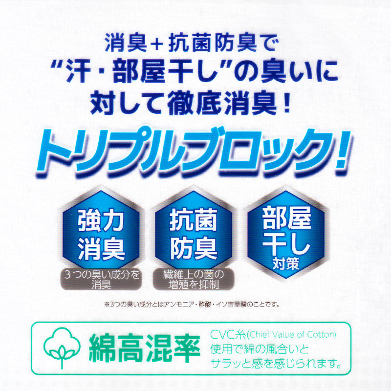 綿混 抗菌防臭 強力消臭 部屋干し対策