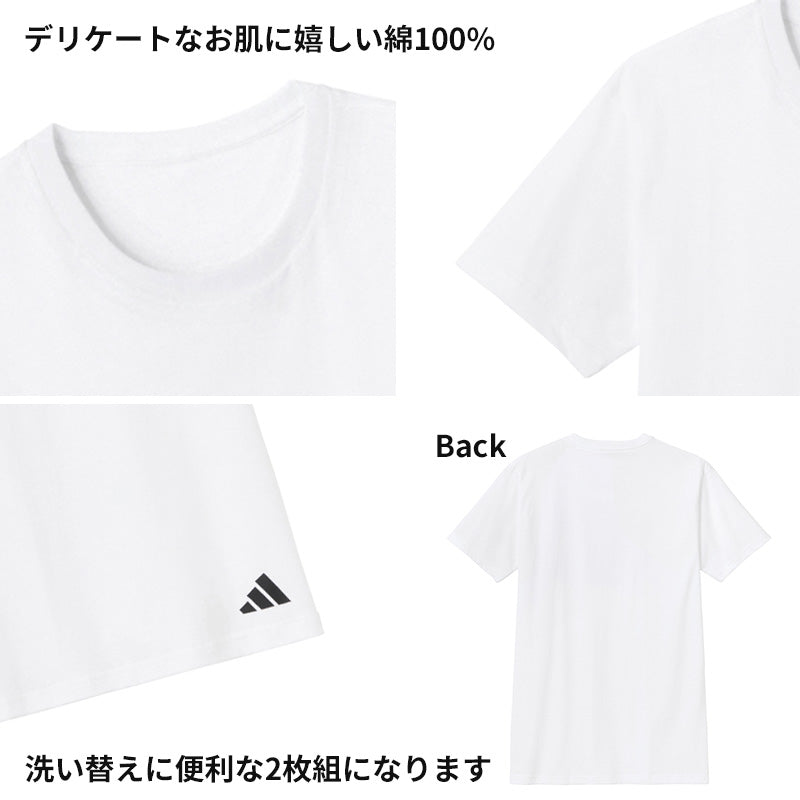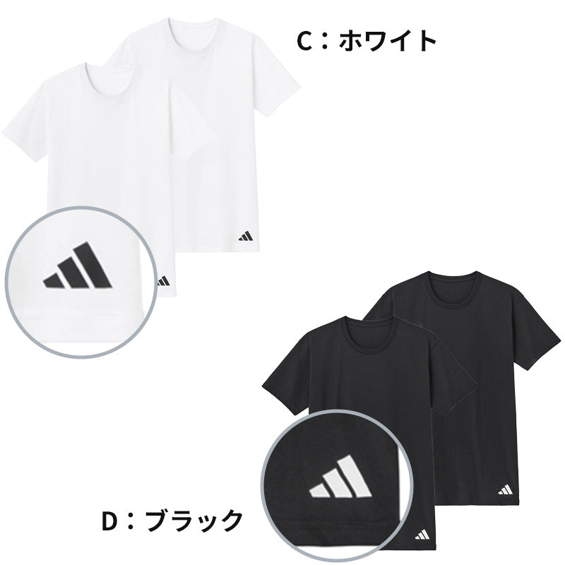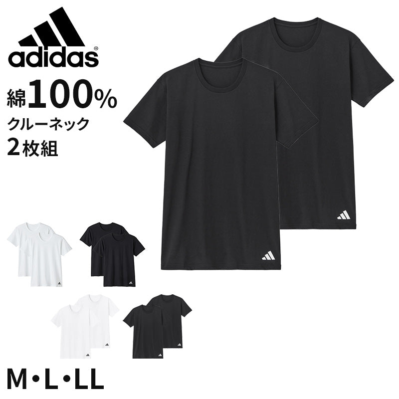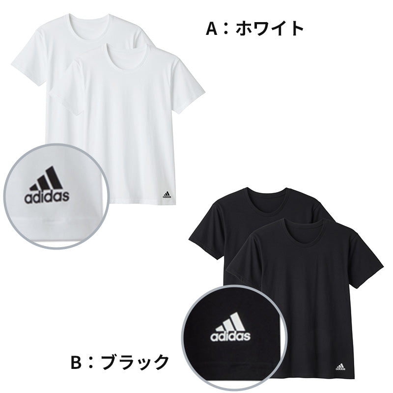 アディダス 綿100 Tシャツ メンズ 2枚組 グンゼ M L LL クルーネック 丸首 肌着 下着 インナー シャツ 2枚セット adidas gunze 白 黒 プレゼント ギフト