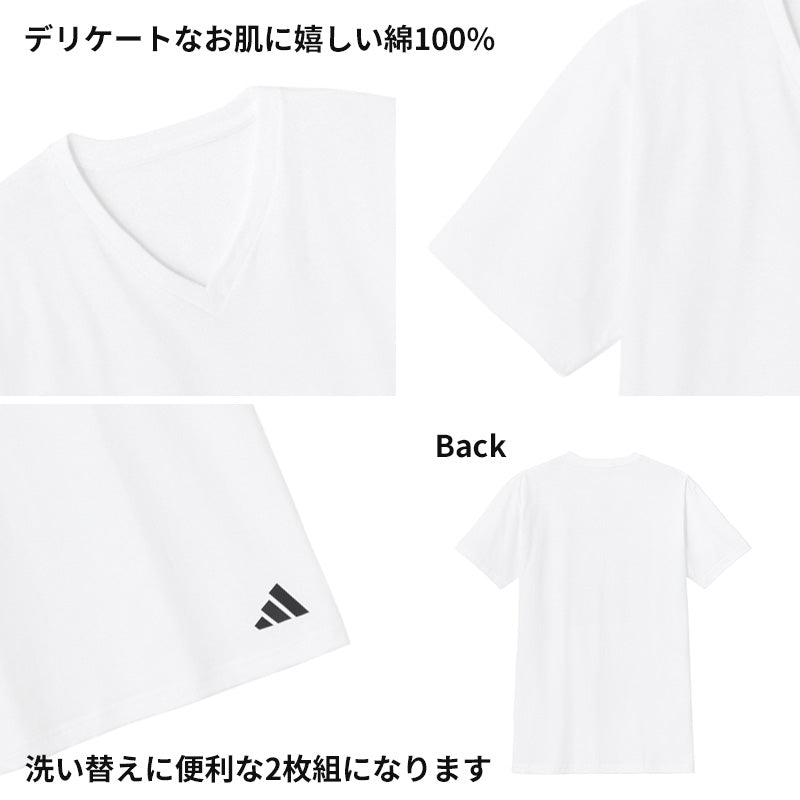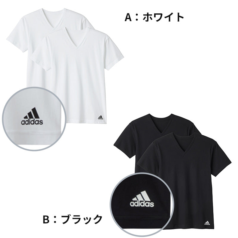 アディダス v首 Tシャツ 綿100 メンズ 2枚組 グンゼ M L LL vネック 肌着 下着 インナー シャツ 2枚セット adidas 白 黒 プレゼント ギフト