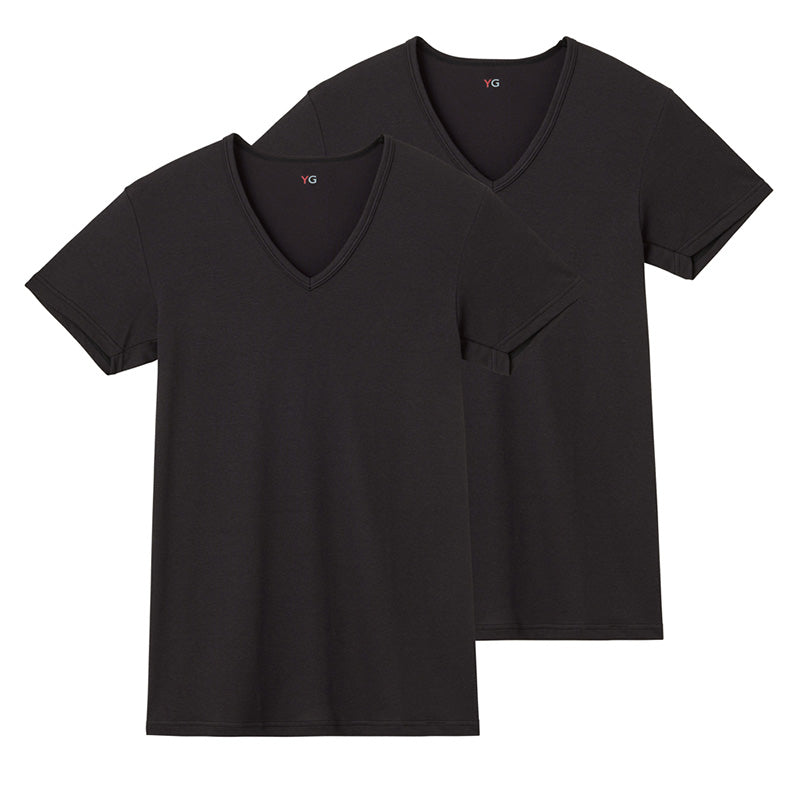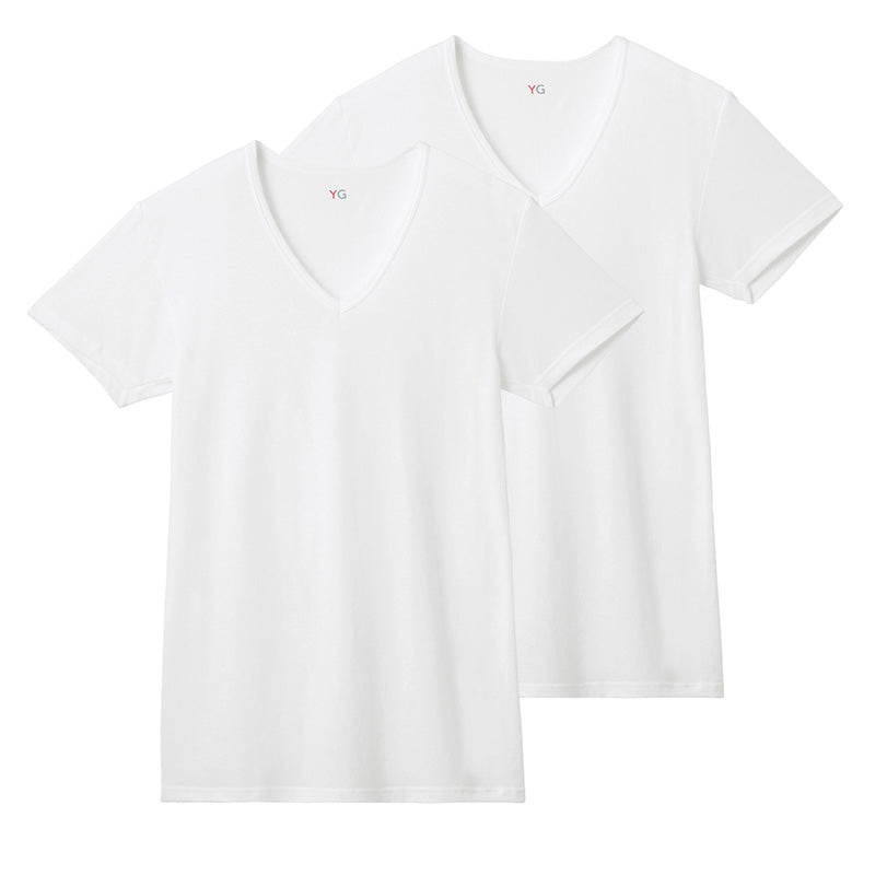 グンゼのYGから汗を吸って素早く乾く、ドライタッチのvネック鹿の子Tシャツ2枚組です