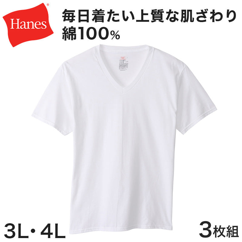 ヘインズ メンズ VネックTシャツ 3枚組 BIG 3L・4L (Hanes Global Value Line 綿100 インナー アンダーウェア 肌着 下着)