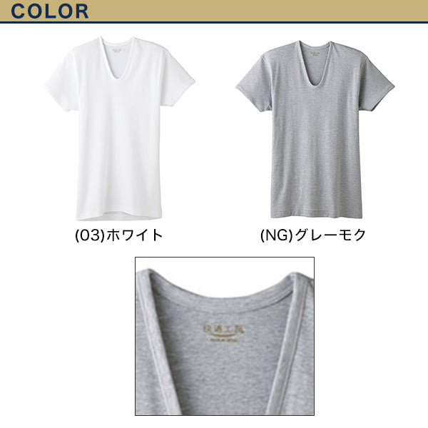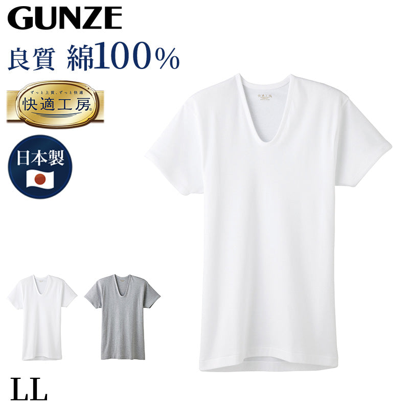 グンゼ 快適工房 メンズ 半袖 インナー U首シャツ 綿100% LL 紳士 肌着 下着 インナーシャツ 白 灰 コットン100 男性 Uネック やわらか 日本製 GUNZE 大きいサイズ