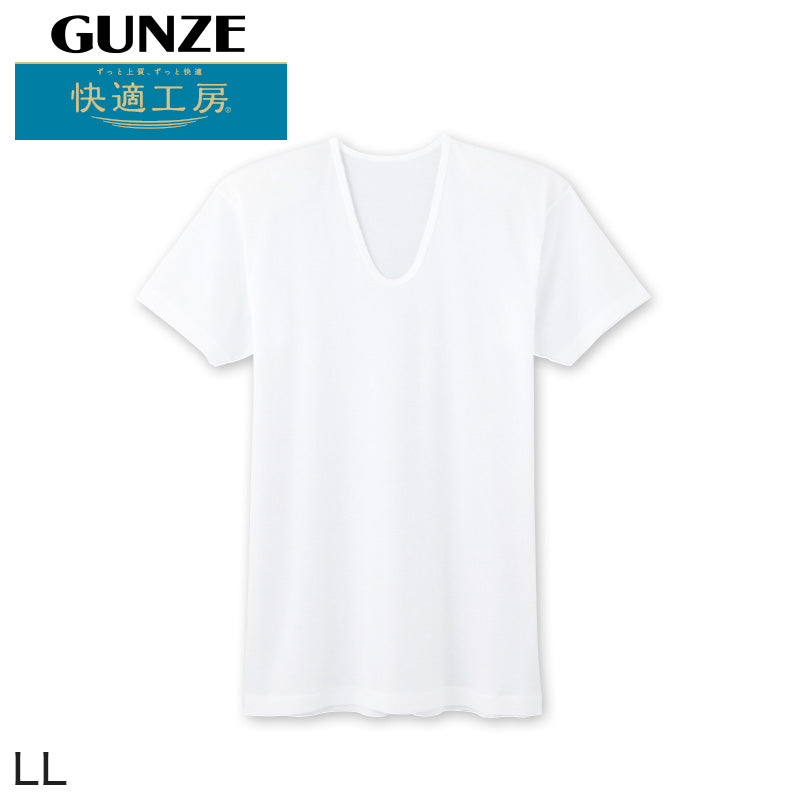 グンゼ 快適工房 紳士 半袖U首シャツ 涼風綿 LL (メンズ GUNZE 綿100% コットン 男性 下着 肌着 インナー Uネック 夏 日本製 大きいサイズ) (在庫限り)