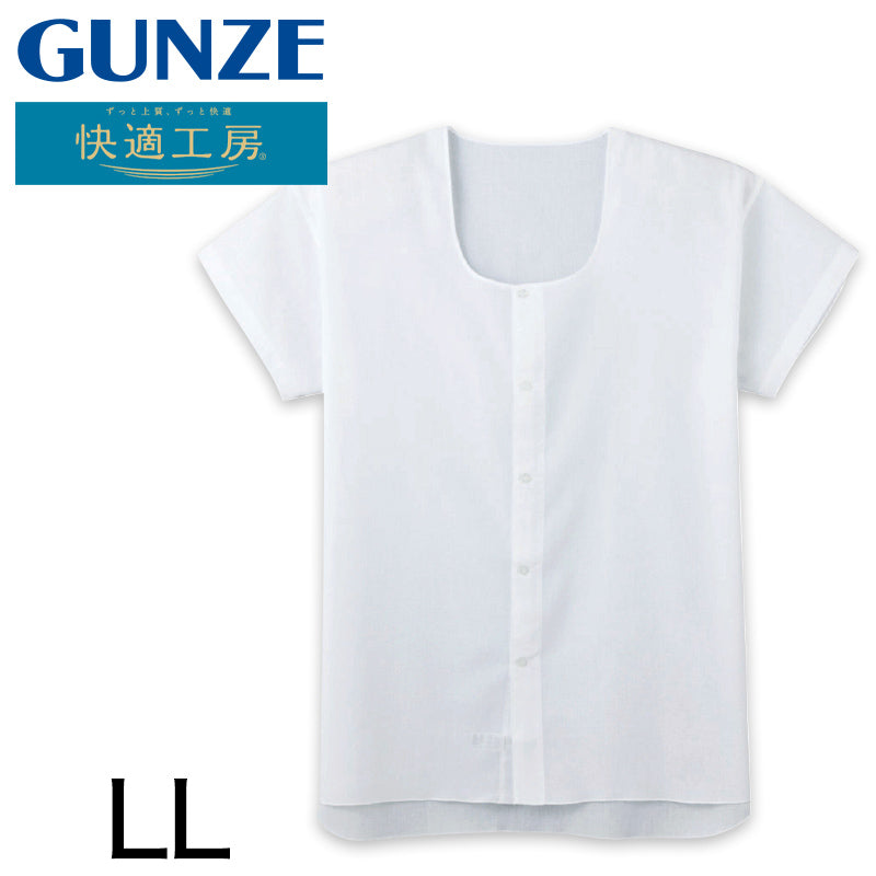 グンゼ 快適工房 紳士 クレープ 半袖前開きシャツ LL (メンズ GUNZE 綿100% 前開き コットン 男性 下着 肌着 インナー 日本製 白 夏 介護 大きいサイズ) (在庫限り)