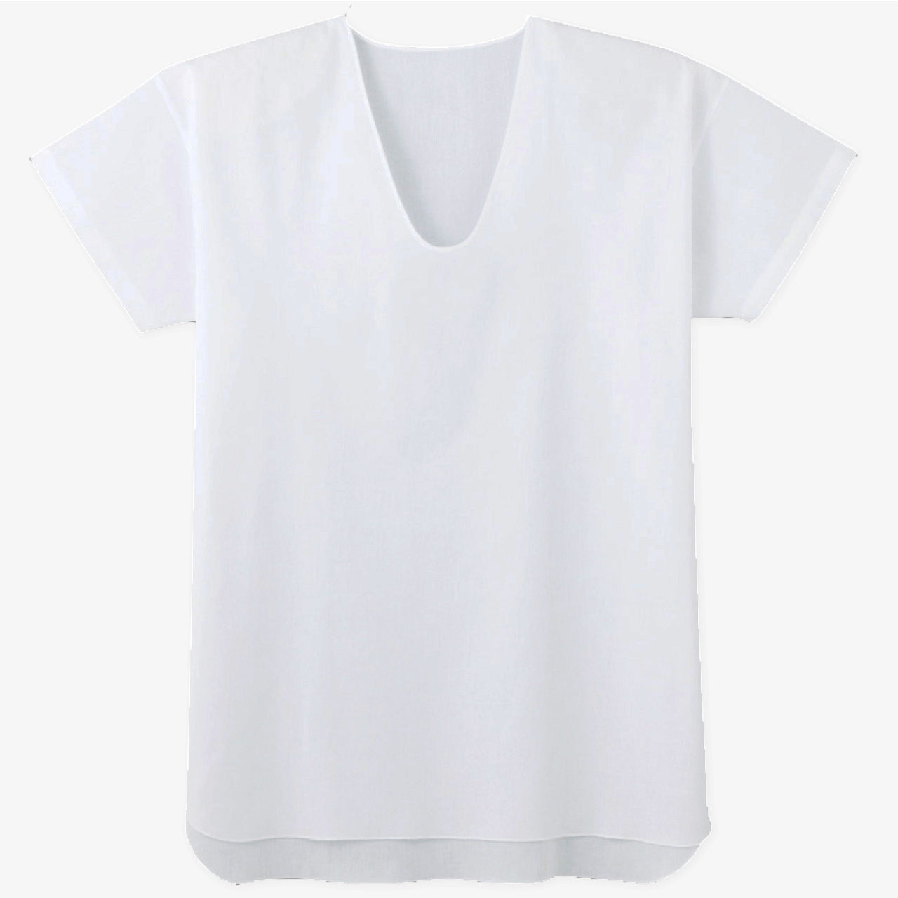 本商品はメンズ(男性・紳士)用のクレープ素材の半袖U首(Uネック)シャツです。