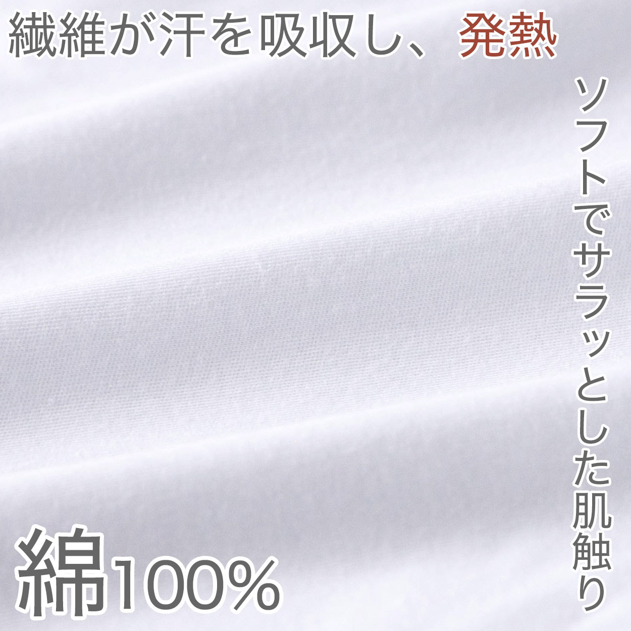綿の繊維自体が汗などの水分を吸収して発熱することで、冬の防寒に役立つ肌着です。