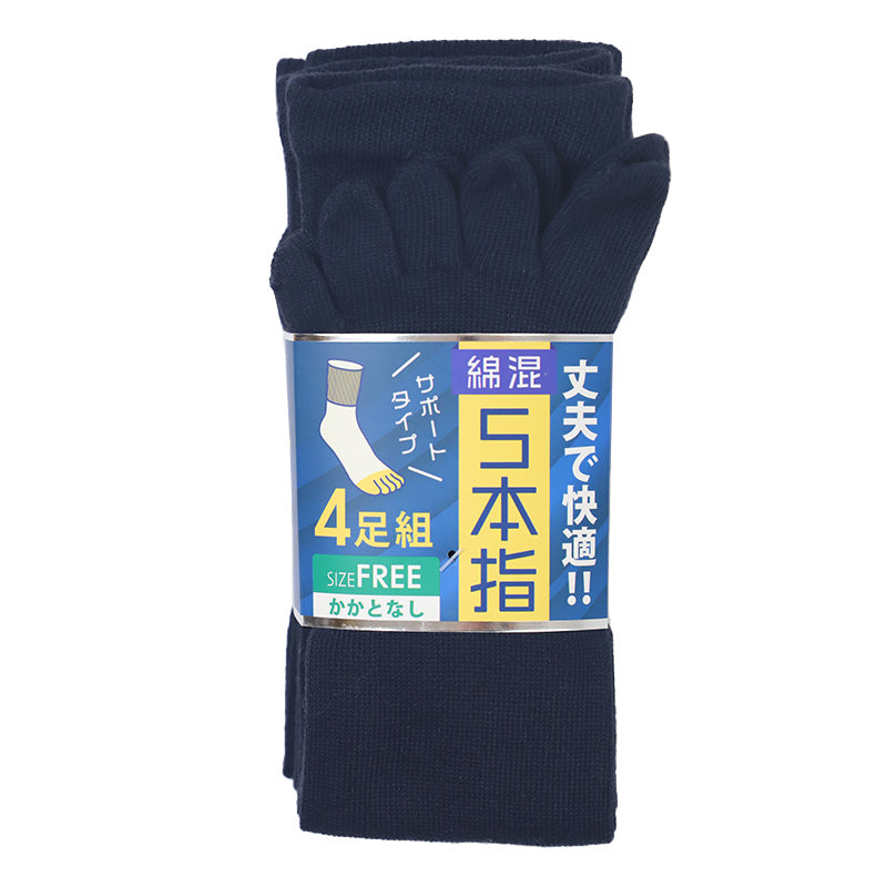 メンズ 5本指 ソックス 4足組 かかとなし フリーサイズ クルーソックス くつ下 くつした 靴下 無地 作業用 シンプル 丈夫 セット まとめ買い
