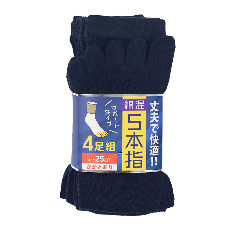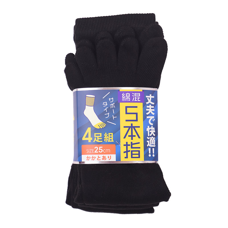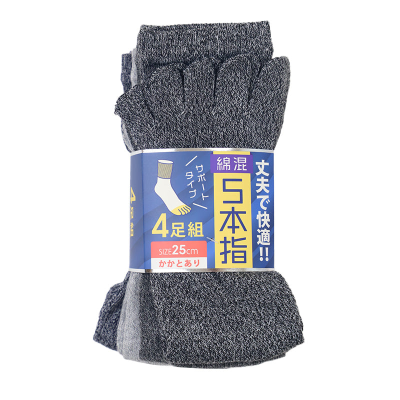 メンズ 5本指 ソックス 4足組 25cm クルーソックス くつ下 くつした 靴下 無地 作業用 かかと付き かかと シンプル 丈夫 セット まとめ買い