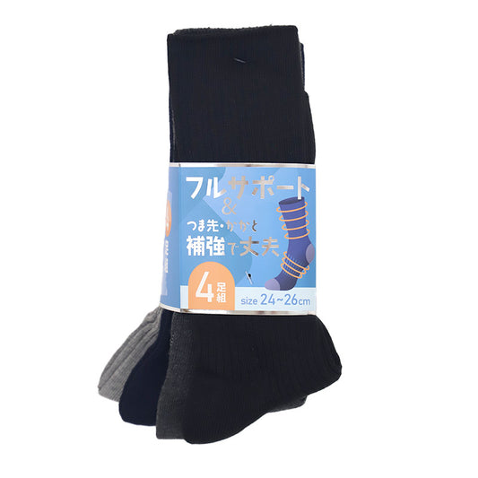 メンズ 5本指 ソックス 4足組 25cm クルーソックス くつ下 くつした 靴下 無地 作業用 かかと付き かかと シンプル 丈夫 セット まとめ買い