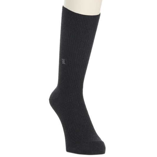 ソックス メンズ 靴下 ワンポイント刺繍 リブソックス ビジネスソックス 紳士 K刺繍 クルーソックス 2足組 24-26cm・26-28cm 男性 ワンポイント くつ下 くつした シンプル アツギ WORK-Fit