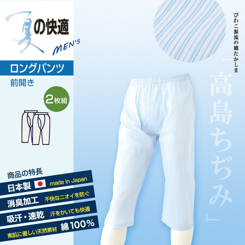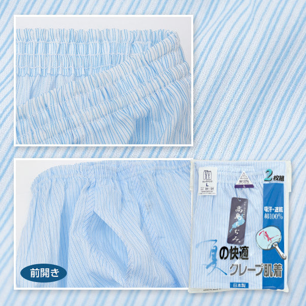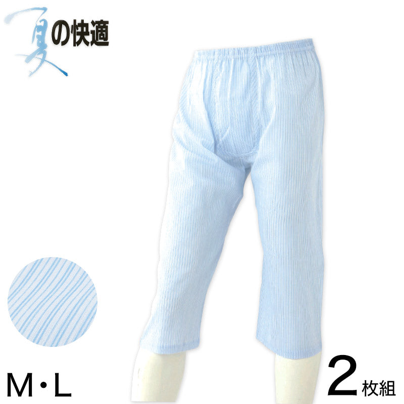 クレープ素材 メンズ ステテコ 綿100% ロングパンツ 前あき 2枚組 ストライプ M・L (クレープ肌着 紳士 男性 インナー 夏 前あきパンツ 前開きパンツ ロンパン すててこ ズボン下 涼しい M L LL) (在庫限り)