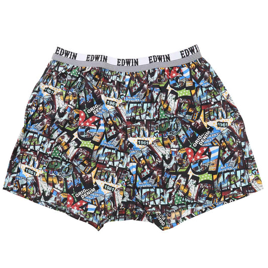 トランクス エドウィン メンズ EDWIN 綿100% 前開き 柔らかい 定番 綿素材 ゆったり 快適 通気性 涼しい 柄 プリント インナー 下着 アンダーウェア パンツ