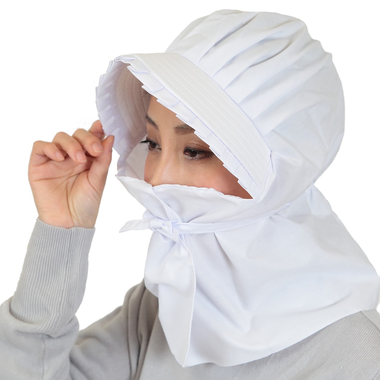 女性用のフリル付き農帽です。白無地です。