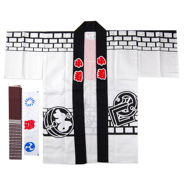 白まとい柄祭半天 3点セット 7-9才・10-12才