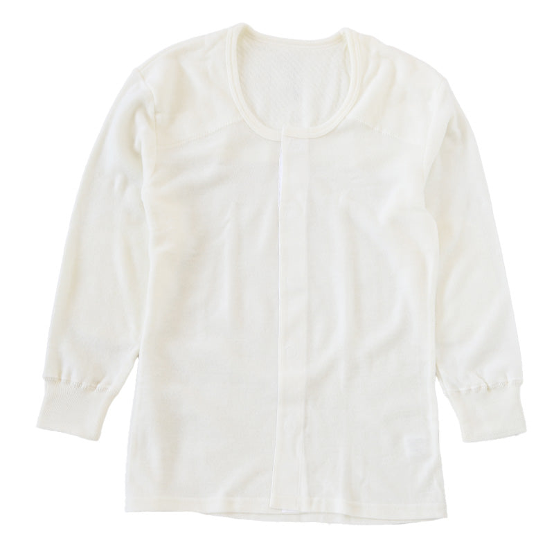 遠赤外線 メンズ U首 長袖 前開き 肌着 冬 アンゴラ混 インナー M~LL マジックテープ ワンタッチ 下着 長袖シャツ 紳士 中綿 発熱 防寒 あったか あたたかい ワンタッチ プレゼント ギフト