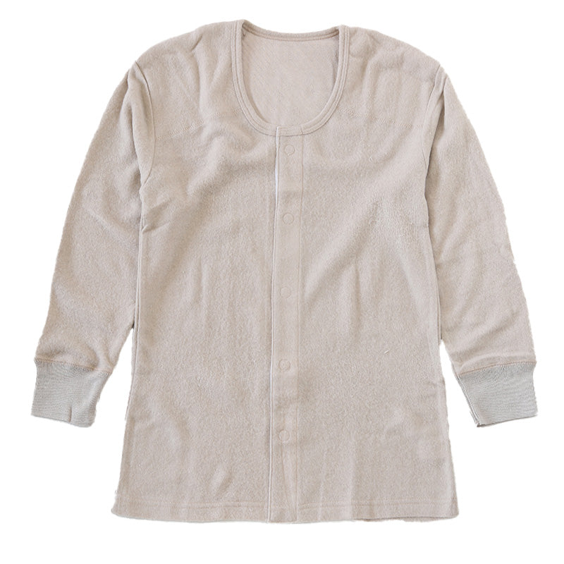 遠赤外線 メンズ U首 長袖 前開き 肌着 冬 アンゴラ混 インナー M~LL
