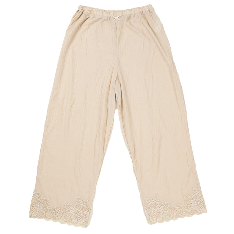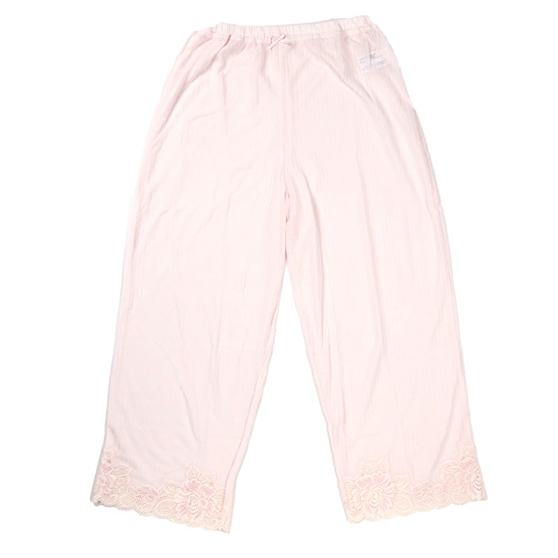 7分丈 ボトムス ズボン下 レディース 日本製 シルク混 M L LL ボトム インナー 裾レース 針抜き 柔らかい 肌ざわり 通気性 伸縮性 軽やか 肌着 下着 ピンク ベージュ ラベンダー (在庫限り)