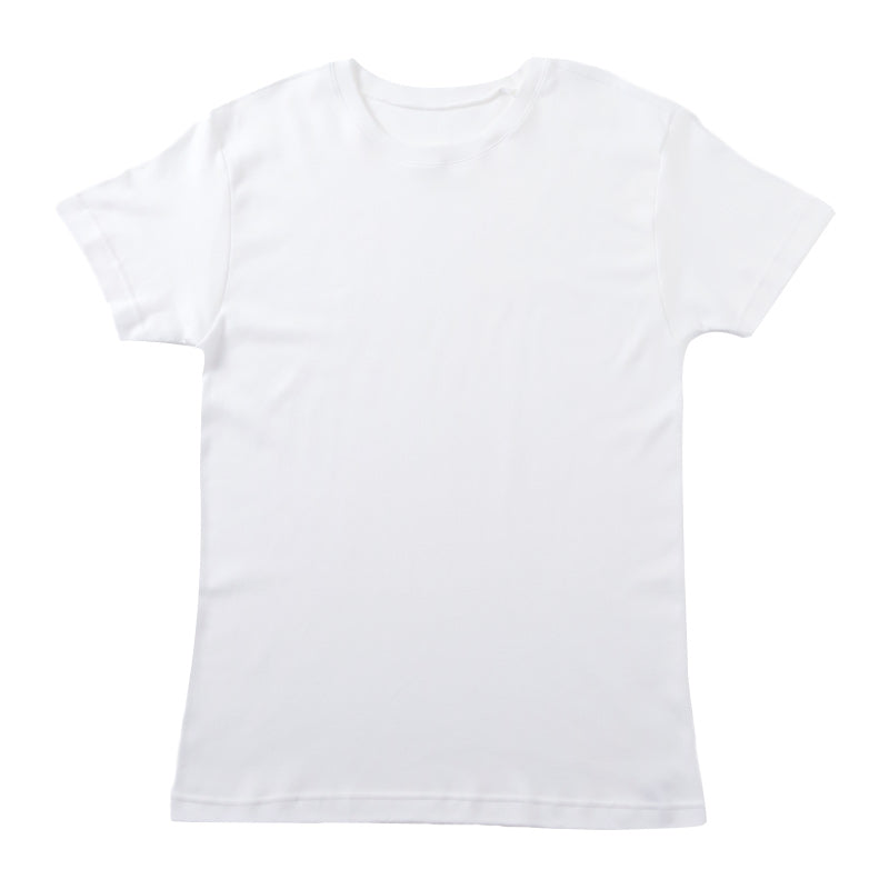 ふっくら 綿100%素材の半袖丸首シャツです。