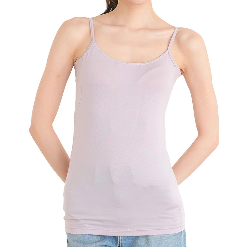 このキャミソールの最大の特徴は、メッシュ素材の背中汗取りと、脇高設計の脇汗取り部分。