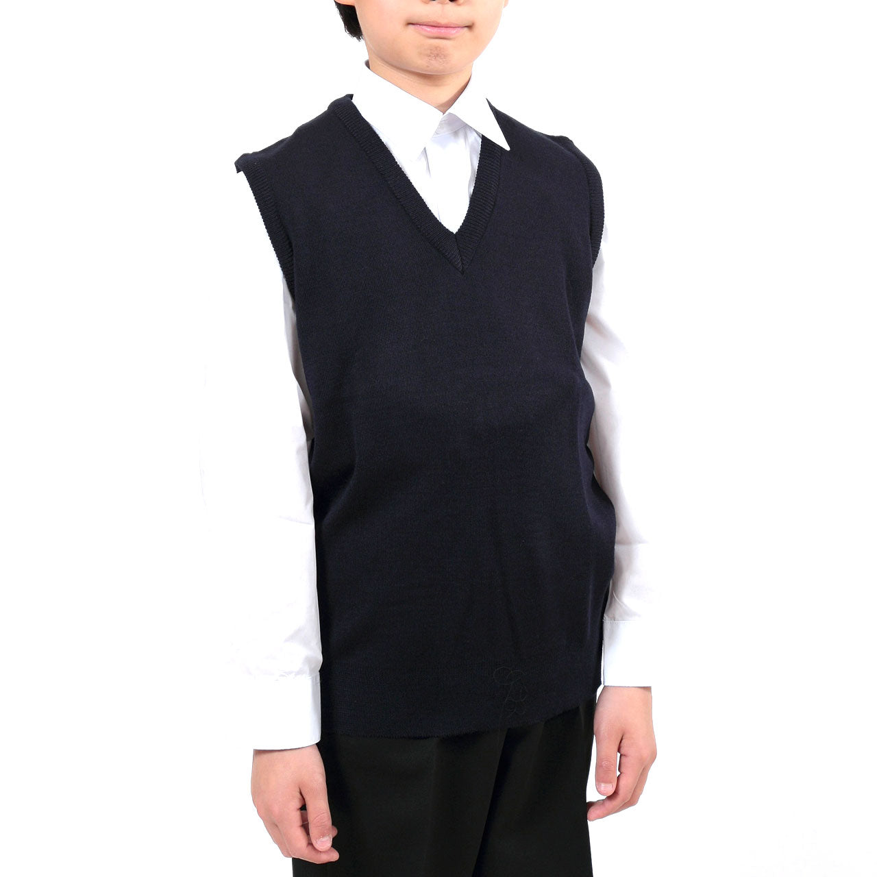スクール ニット ベスト キッズ ウール混 洗える 100~120cm スクールニット 小学生 小学校 子供 毛玉ができにくい 男子 女子 日本製 (取寄せ)