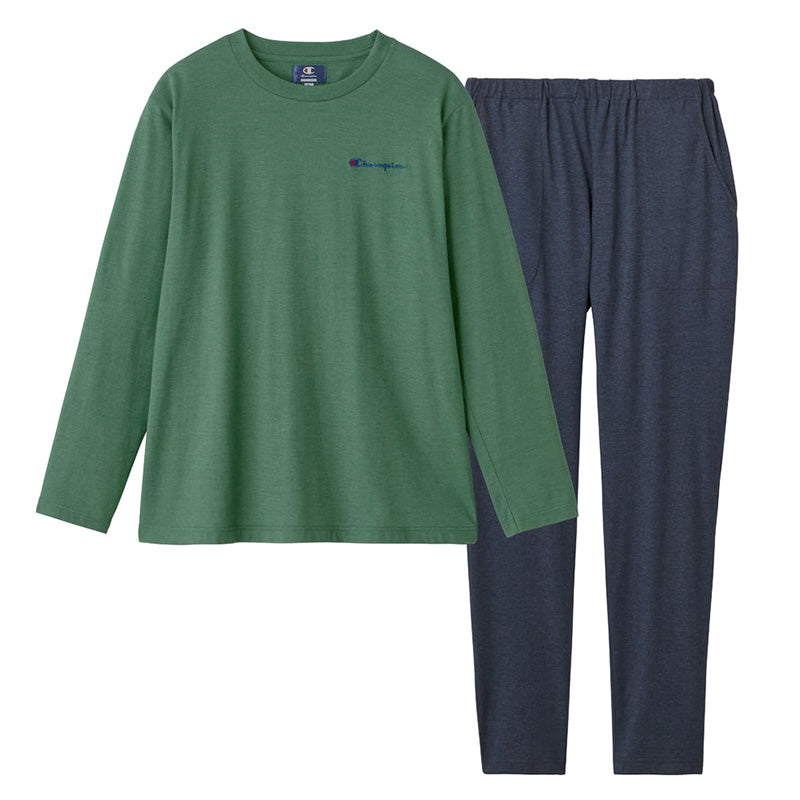 チャンピオン メンズ 長袖 パジャマ 上下セット シンプル M L LL 3L Champion 春夏 秋 薄手 部屋着 ホームウェア ルームウェア セットアップ ロゴ入り ロゴ 父の日 (送料無料) (在庫限り)