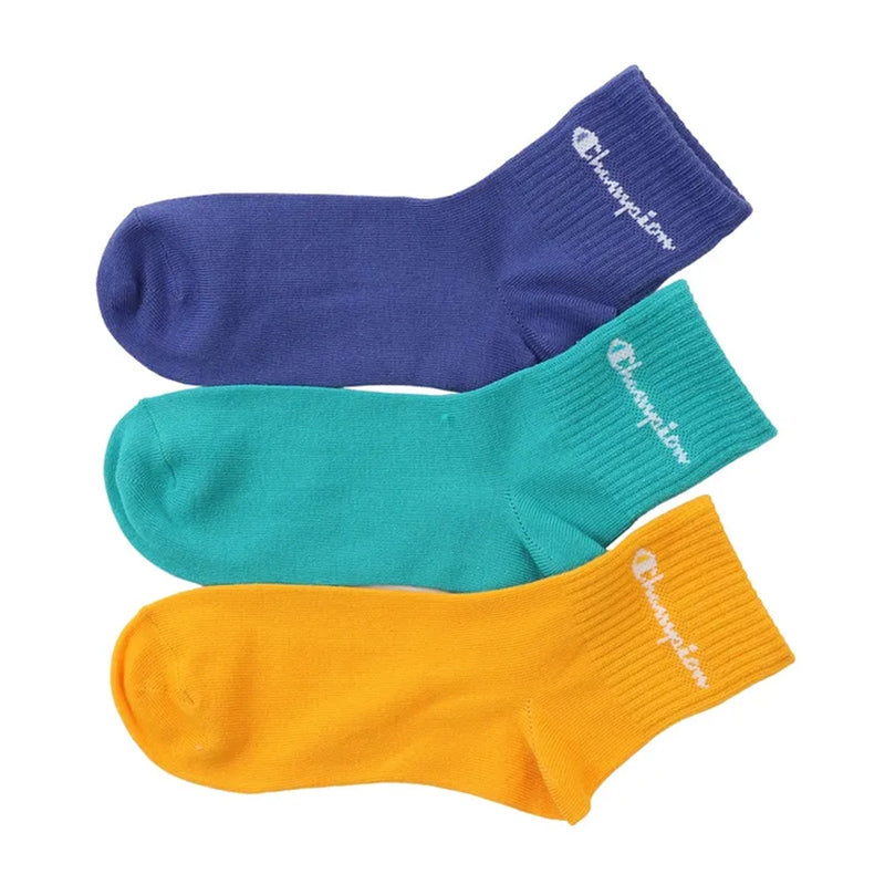 チャンピオン 靴下 レディース 綿混 クォーターレングス ソックス 3足組 ワンポイント 23-25cm