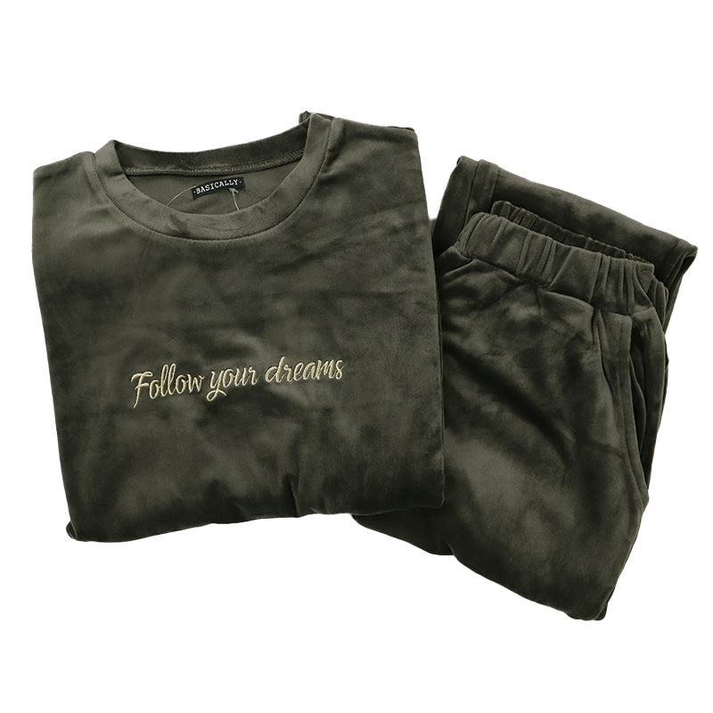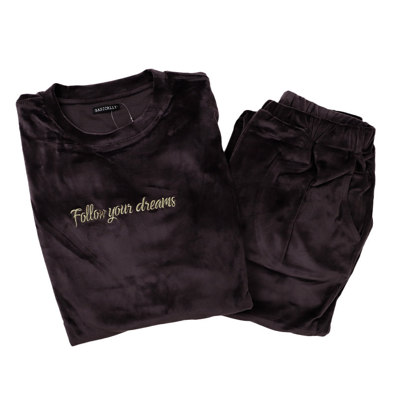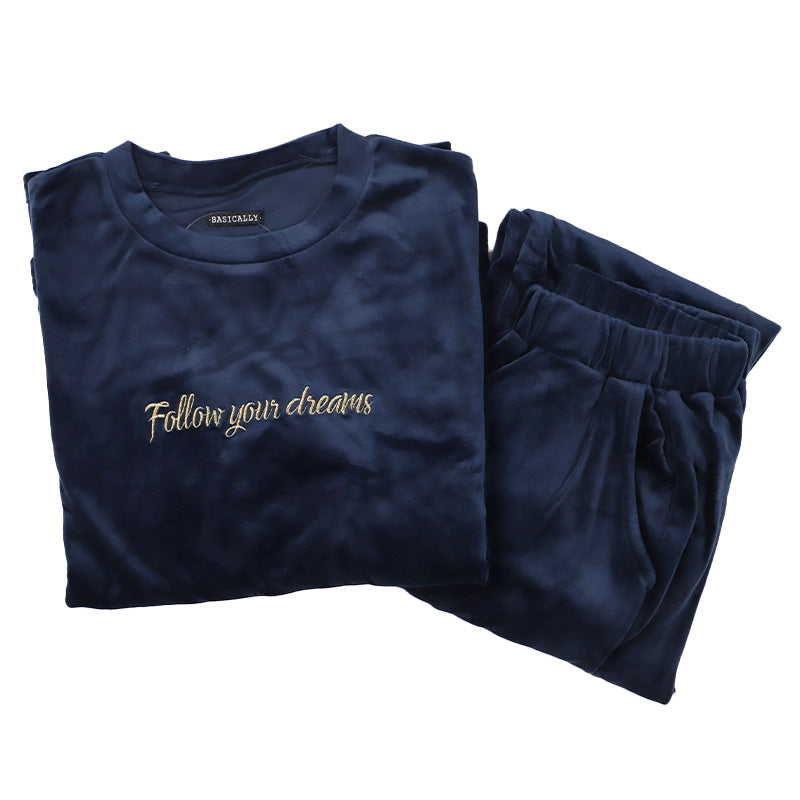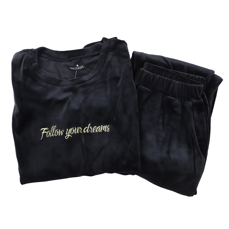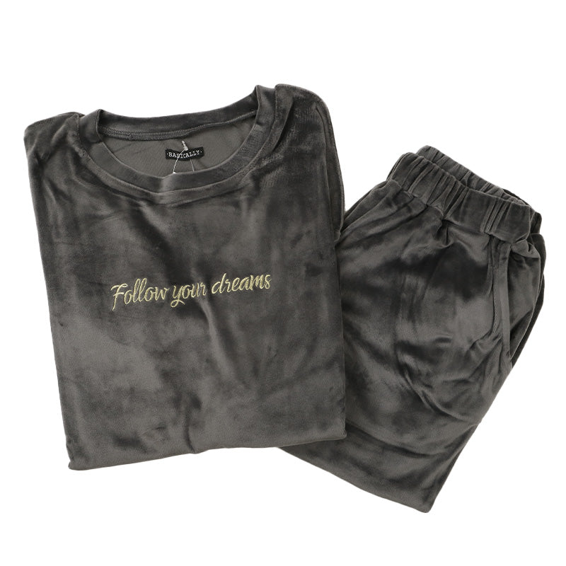パジャマ レディース 上下セット ベロア 秋 冬 かわいい 丸首 長袖 M-L