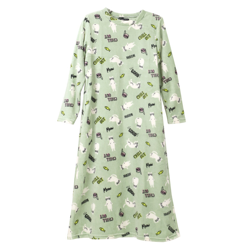 ルームウェア ワンピース 冬 長袖 レディース ルームウエア 部屋着 パジャマ かわいい あったかい M-L