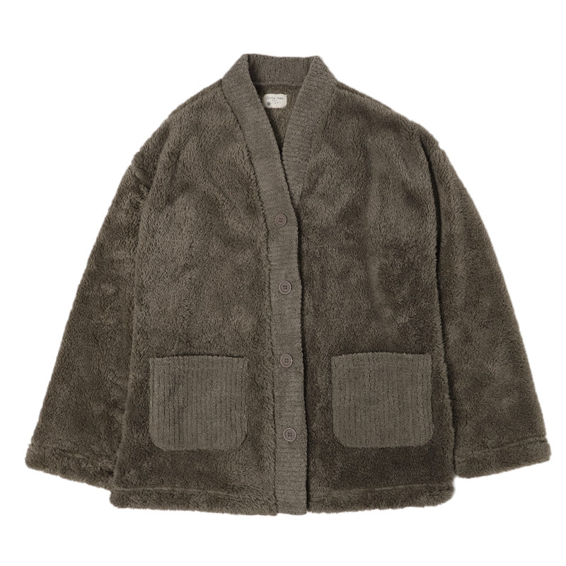 冬場のルームウェアの上からさっと羽織れて、リラックス感のあるおしゃれスタイルが完成します。