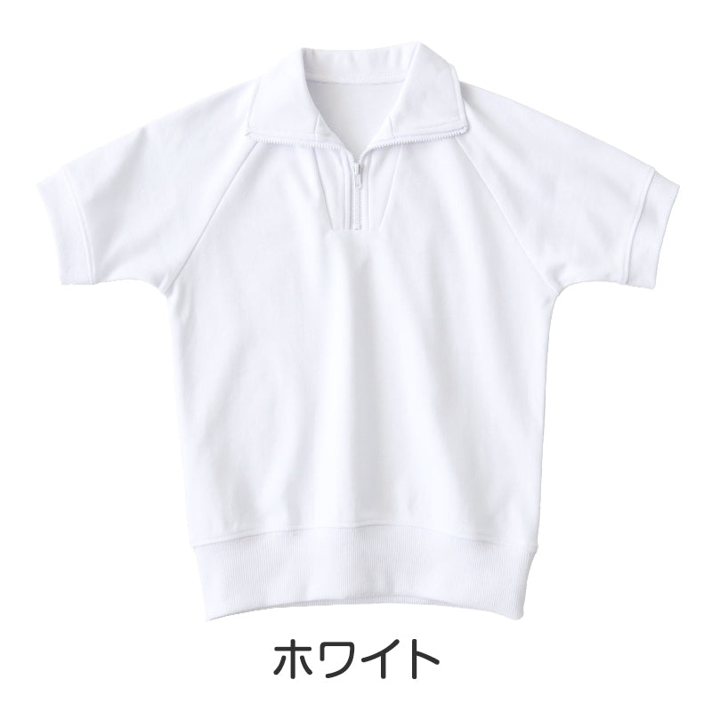 体操服 半袖 襟付き ハーフジップ 160 170 180 体操着 大きいサイズ S~3L ゆったり 半そで 男子 女子 白 小学生 小学校 中学生 女の子 男の子 ファスナー チャック 衿つき 速乾 子供 綿