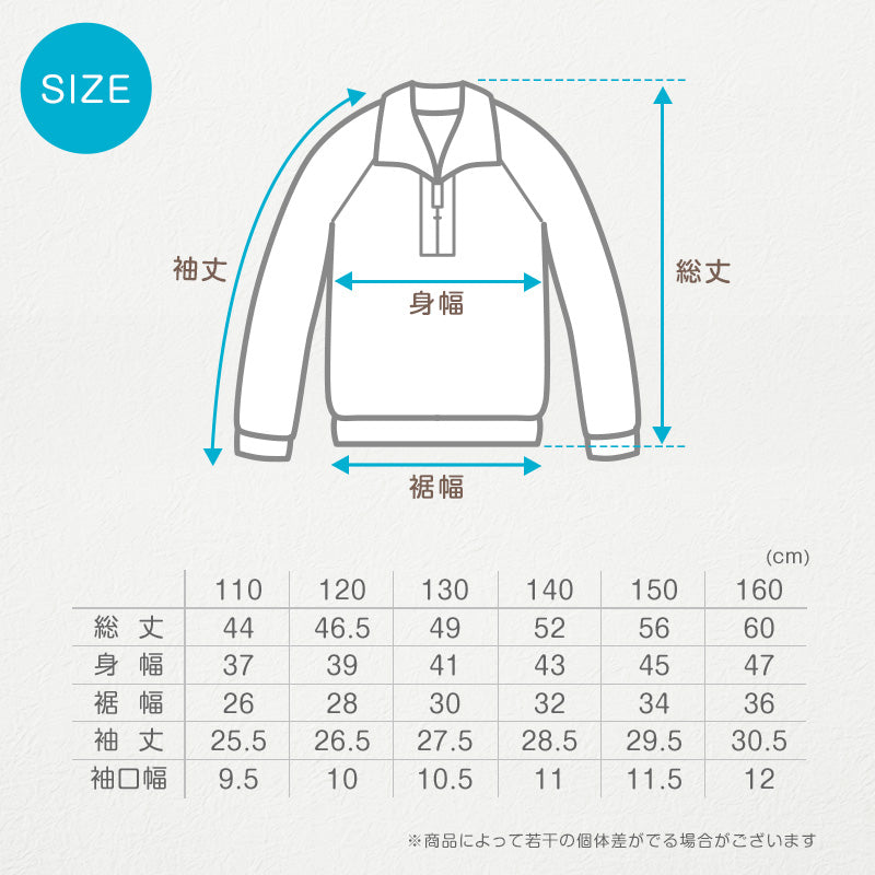 男女共通のシンプルなデザインで、サイズは110cm~160cmまで対応した、小学生の成長段階に合わせて選びやすい展開です。
