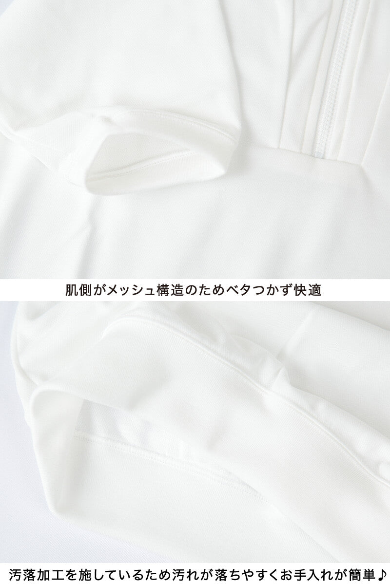 ドロ汚れに強い「防汚加工」メッシュ素材でサラッとした着心地です。