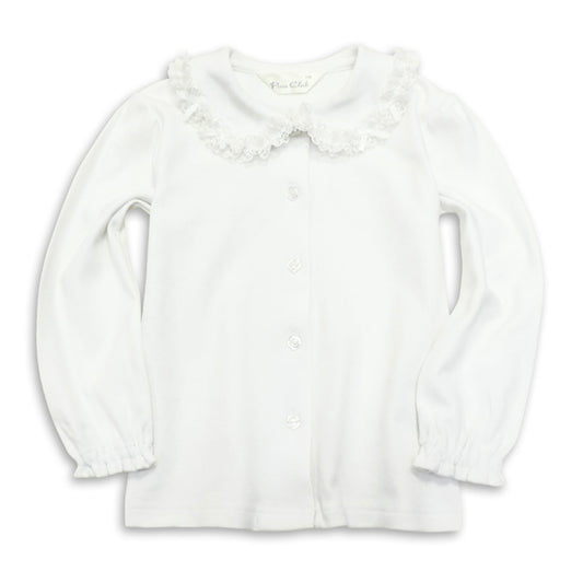 女の子 長袖 ブラウス キッズ 丸襟 シャツ フリル スクール 綿100% 90cm~130cm 小学校 小学生 制服 スクールシャツ 幼稚園 ニットブラウス 子供 刺繍 リボン 通学 女児 保育園 園児 学生服 学生
