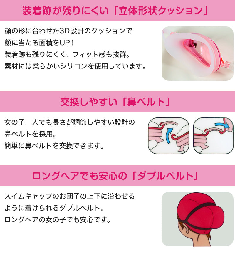 UVカット(紫外線対策)/くもり止め/立体形状クッション(シリコン)/ダブルベルト/SGマーク(製品安全協会認証)