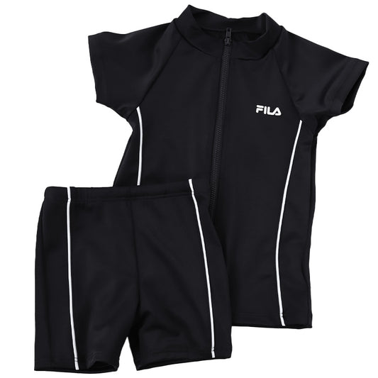 スクール水着 セパレート 女の子 ラッシュガード 半袖 キッズ 上下セット uv FILA 120 130 140 150 160 170cm 子供 ジュニア 女子 スクール 水着 前開き プール スイミング フィットネス水着 黒 紺 (在庫限り)