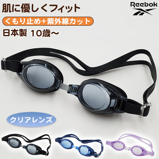 ゴーグル キッズ 子供用 透明 スイミング Reebok フリーサイズ (くもり止め スクール 水泳用品 プール用品 海水浴 プール 水中めがね 小学校) (在庫限り)
