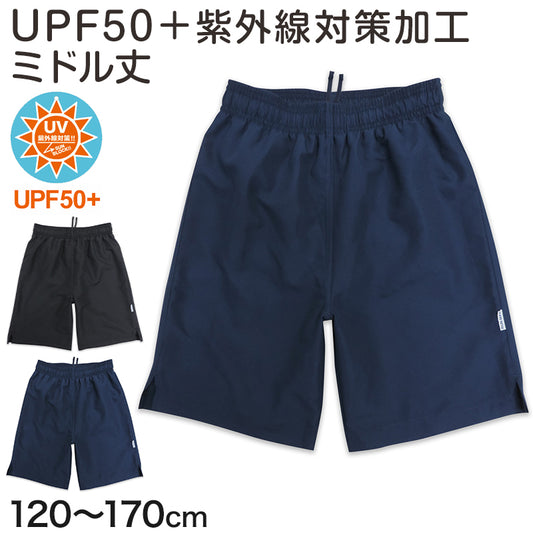 スクール水着 男子 サーフパンツ 120cm~170cm (ミドル丈 プール スイミング 無地 学校 スイムウェア 男の子 海パン インナー付き 黒 紺 小学生 中学生 大きいサイズ) (在庫限り)