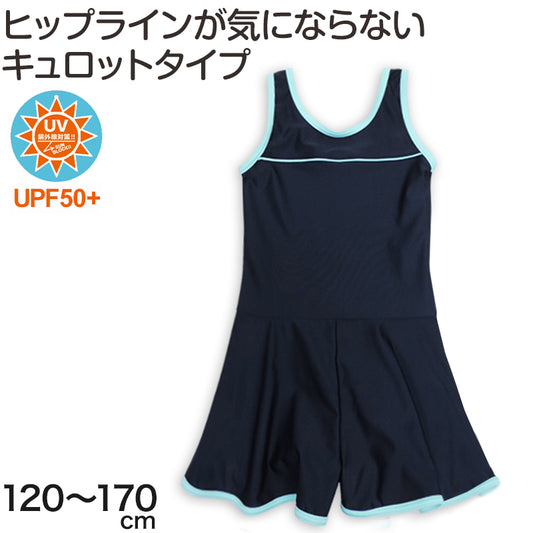 スクール水着 女の子 ワンピース キュロット 120cm~170cm 水着 子供 キッズ 女子 小学生 ガールズ UPF50 紫外線対策 (在庫限り)
