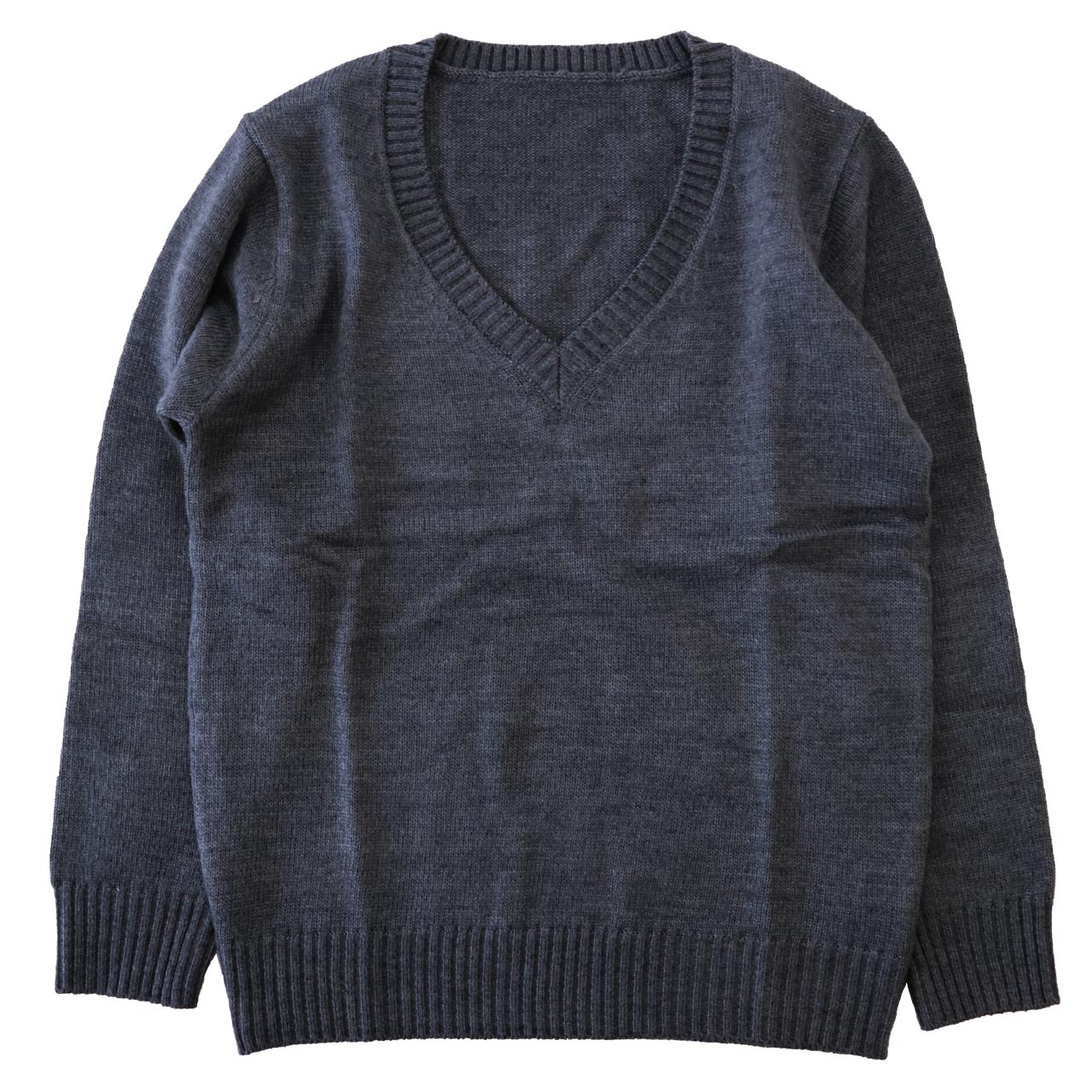 ガールズ用のスクールニット 無地V首(Vネック)ウール混ニットセーターです。