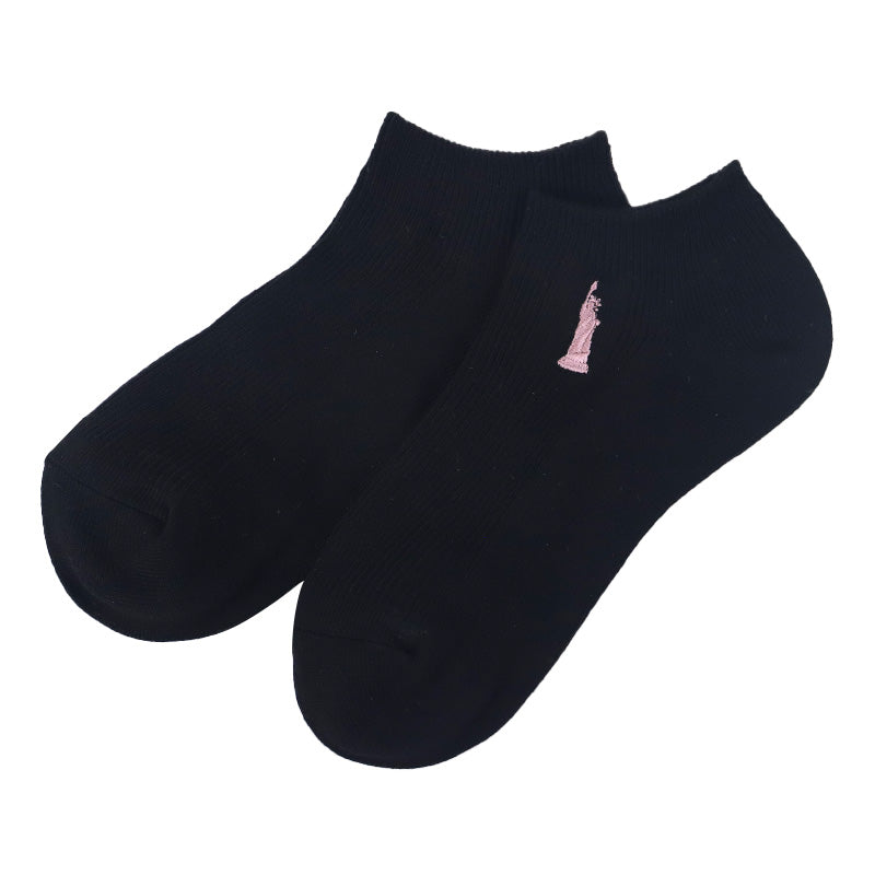 自由の女神がデザインされた刺繍入りの定番ソックスです。