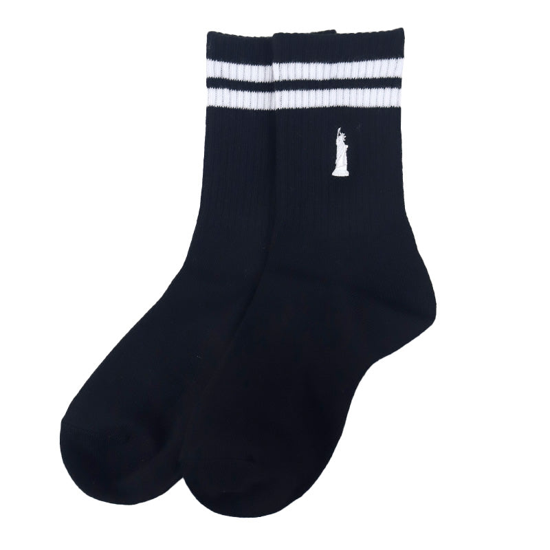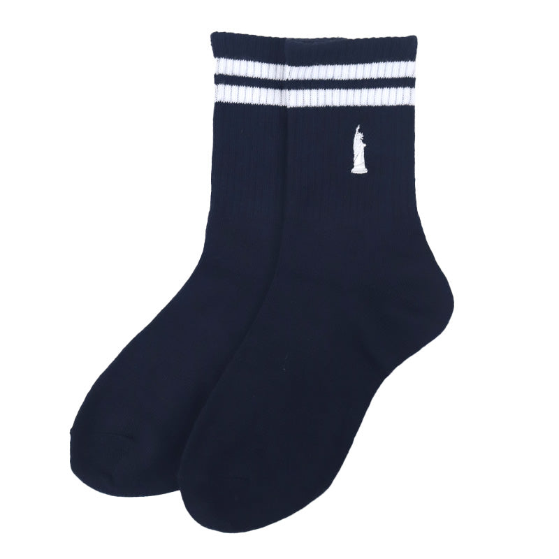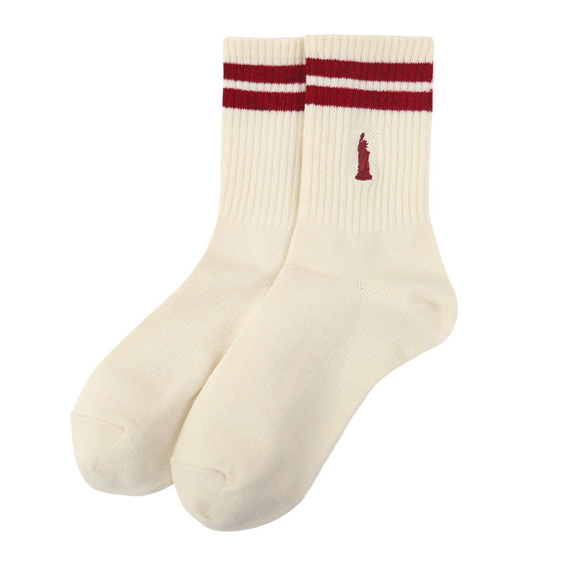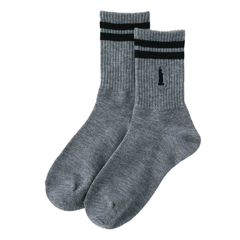 自由の女神がデザインされた刺繍入りの定番クルーソックスです。