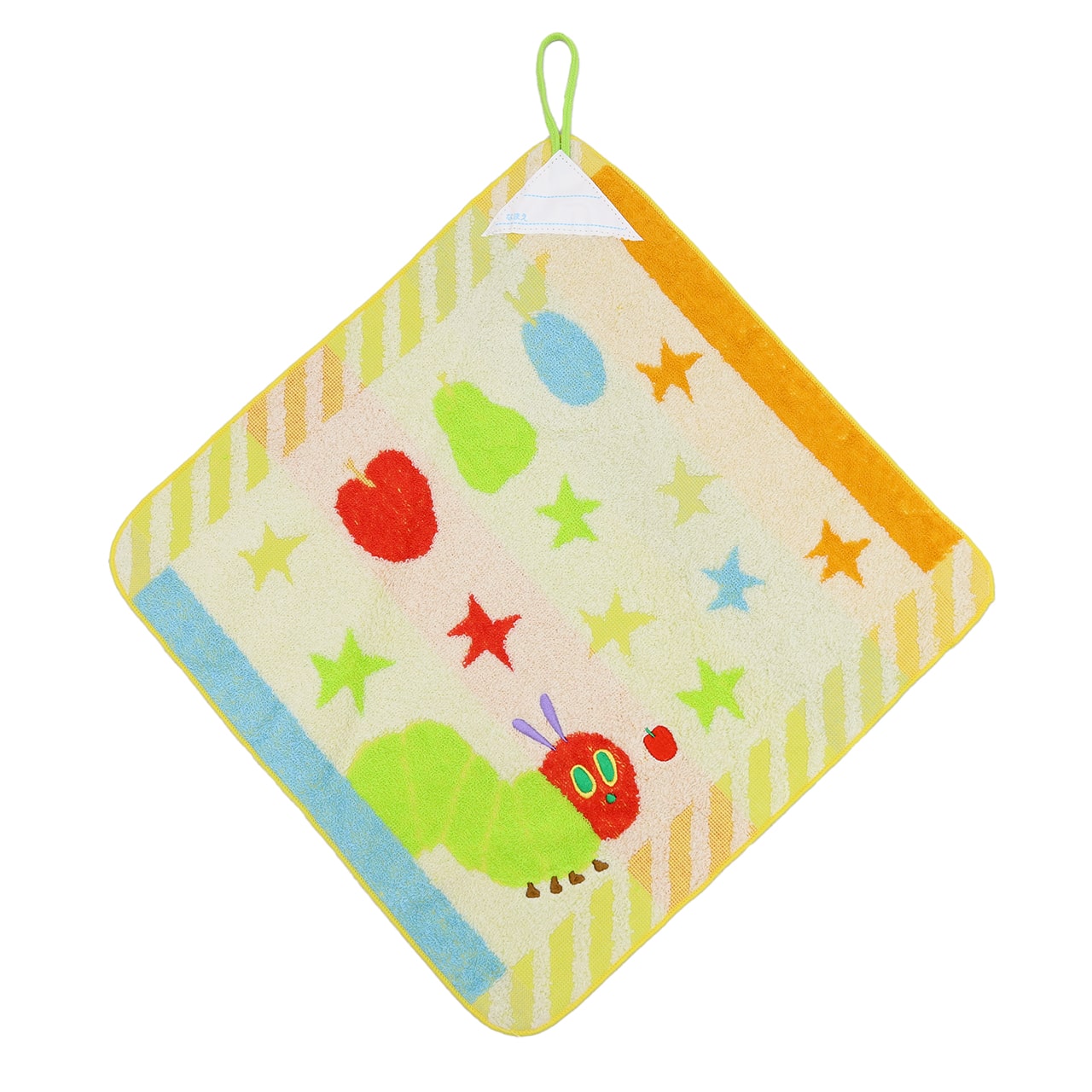 子供たちに大人気の仕掛け絵本「はらぺこあおむし」のデザインのタオルです♪