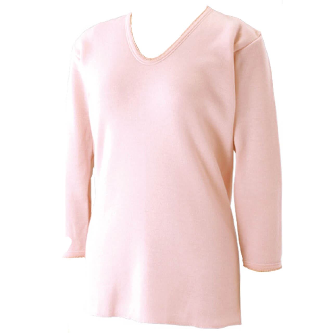 レディース あったか 裏起毛長袖インナー 8分袖 M~3L (大きいサイズ 女性 婦人 下着 エクスランノエール 大きいサイズ ピンク ベージュ 防寒)