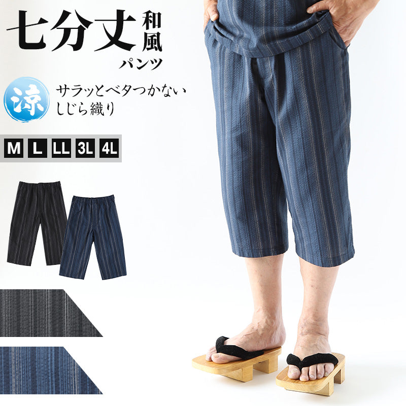 和風 パンツ ホームウェア メンズ 夏 大きいサイズ しじら織り 和柄 M~4L おしゃれ 涼しい 和服 和装 パジャマ 寝巻き 部屋着 ルームウェア アウター 半ズボン 短パン 父の日 ギフト プレゼント 30代 40代 50代 ブラック ネイビー M L LL 3L 4L (在庫限り)