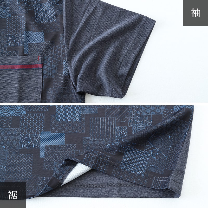 接触冷感 メンズ 半袖 ヘンリーネック 和柄 メンズ 夏 大きいサイズ 和風 M~4L