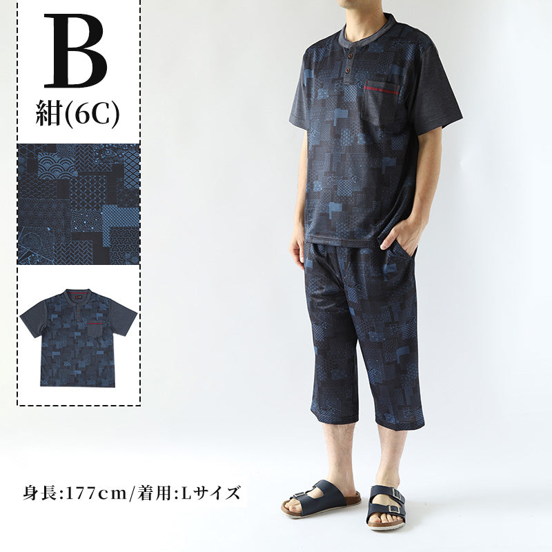 接触冷感 メンズ 半袖 ヘンリーネック 和柄 メンズ 夏 大きいサイズ 和風 M~4L おしゃれ 涼しい 和服 和装 パジャマ 寝巻き 部屋着 ルームウェア アウター t シャツ トップス 父の日 ギフト プレゼント 30代 40代 50代 ブラック ネイビー M L LL 3L 4L (在庫限り)